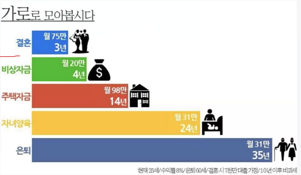 어떤식으로 나눠서 돈을 모을지가 문제고, 현금흐름이 잘 만들 수 있도록 잘 계획을 해야겠음