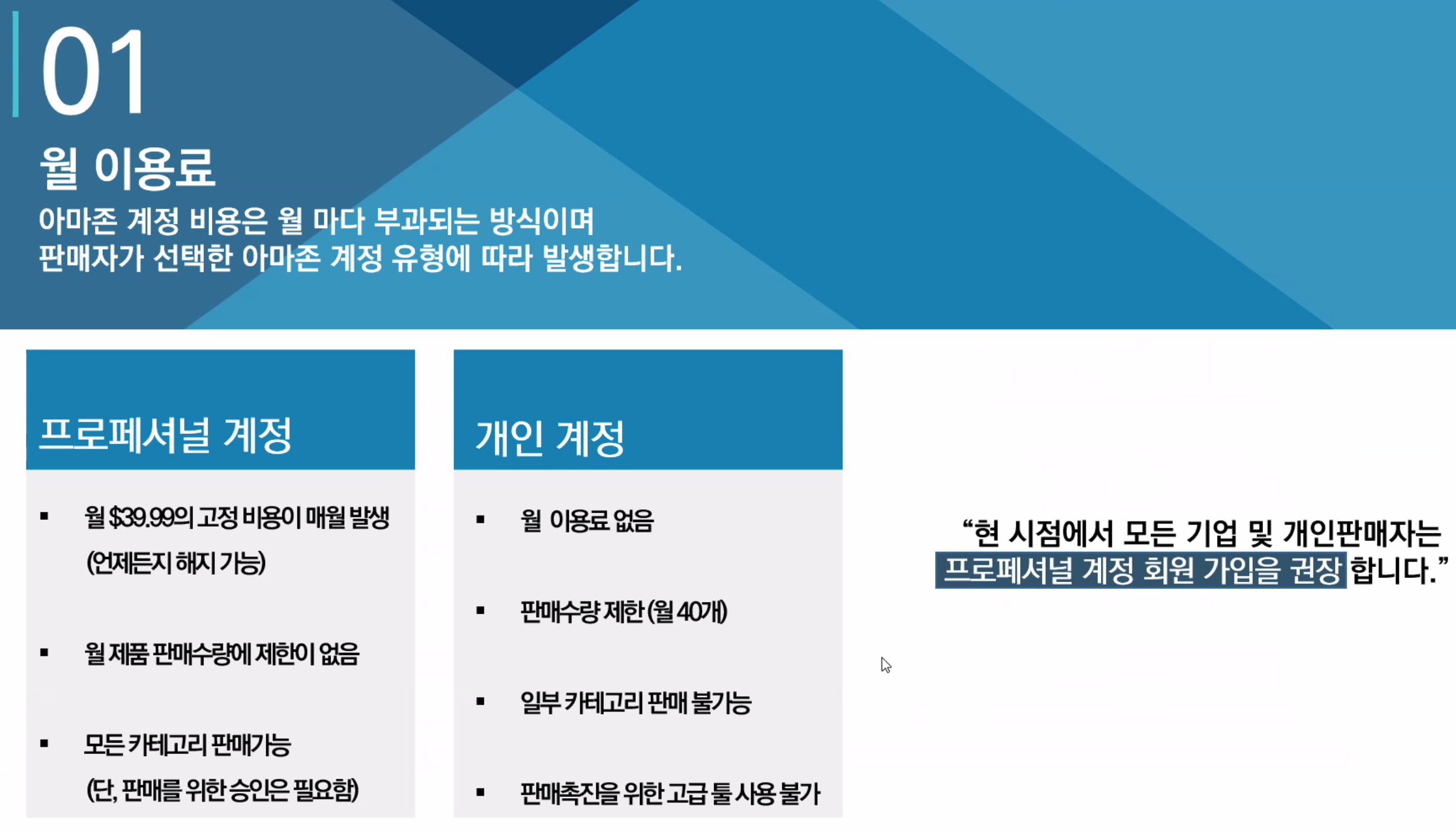 1. 월 이용료 : 판매 유무 상관 없이, 프로페셔널 계정 (individual : 40개만 판매 할 수 있고, 하나씩 팔때 수수료를 떼감(99센트).) 비슷하기 때문에 굳이 individual 계정하기 보다는 business 계정을 만드는게 좋음