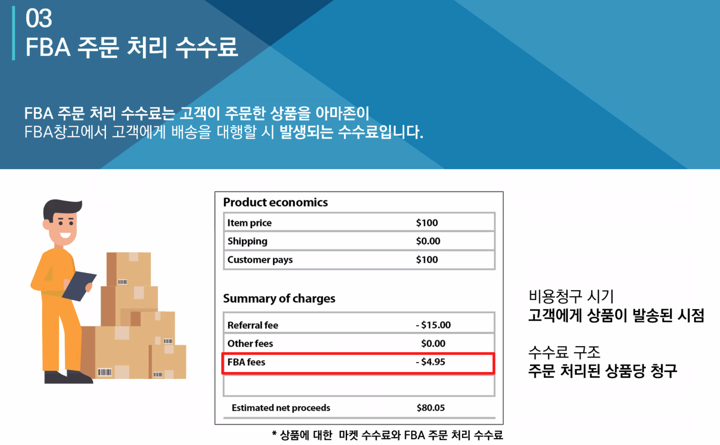 3. FBA창고 보관료 : 제품에 따라 상이함. 장기보관 수수료 : 6개월 이후부터 서서히 증가 함.
