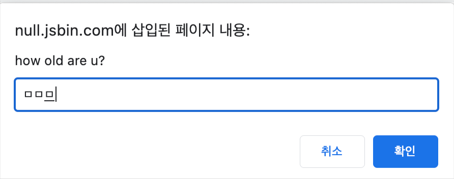 아래처럼 prompt 에 isNaN(age)가 true 가 되면 (숫자가 아닌 경우)