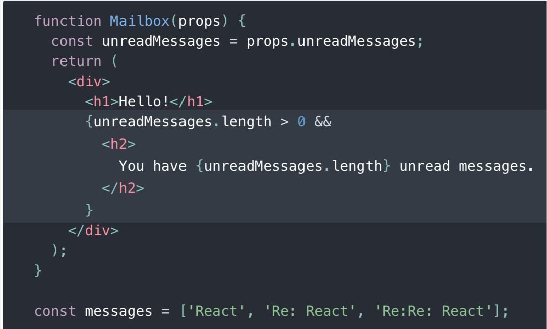 그 안에 JavaScript의 논리 연산자 &&를 사용하면 쉽게 엘리먼트를 조건부로 넣을 수 있다.