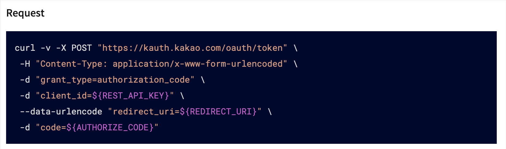 body: `grant_type=authorization_code&client_id=${REST_API_KEY}&redirect_uri=${REDIRECT_URI}&code=${KAKAO_CODE}`,