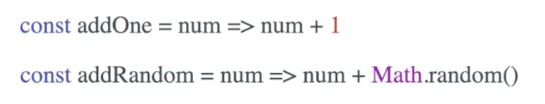 num 이외에 Math.random이라는 외부의 값을 읽어오고 있음 => 함수 호출시 결과값이 매번 다르게 나올 수 있음 + 외부의 상황에 영향을 받을 수 있음 => 함수의 동작결과를 예측하기 힘듦