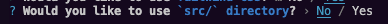 타입스크립트를 쓸 것인지도 물어보는데, 방향키로 선택이 가능하다