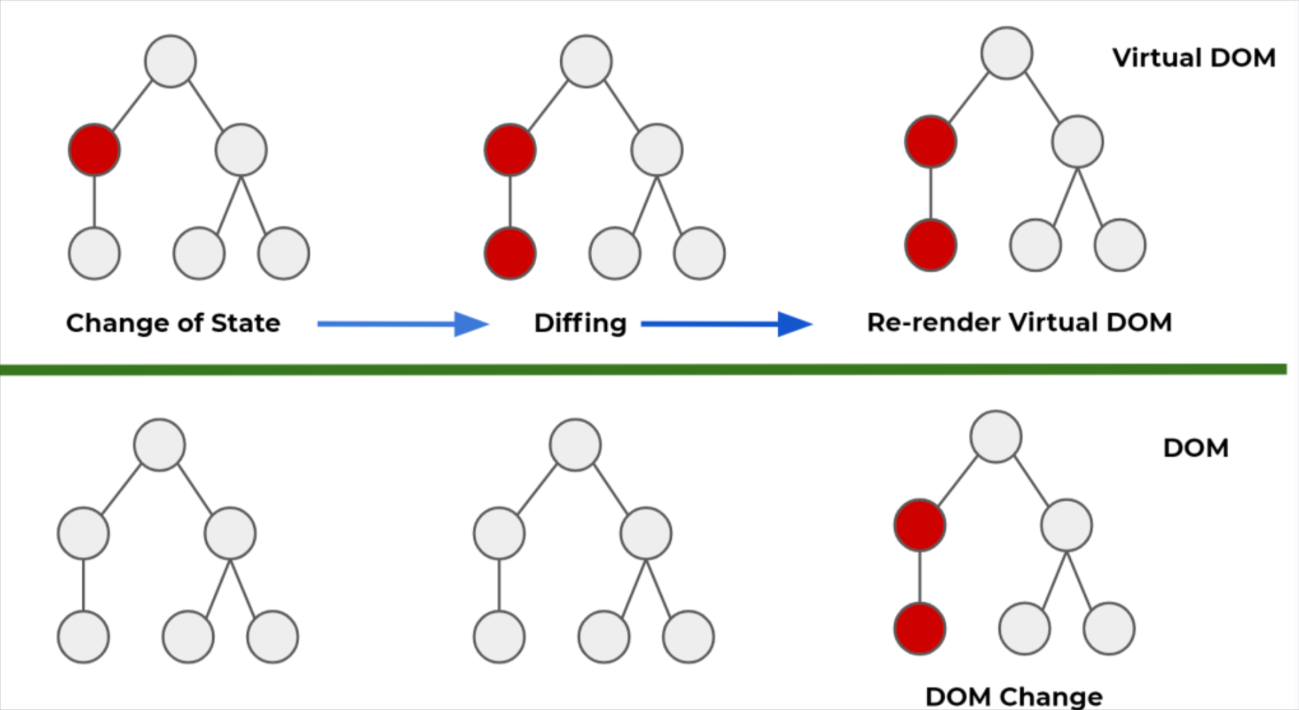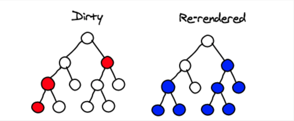 => 전체 DOM tree가 처음부터 다시 그려지는것이 아니라, virtual DOM의 도움을 받아 새로 추가된 부분만 새로 그려지게 되는 것이다.