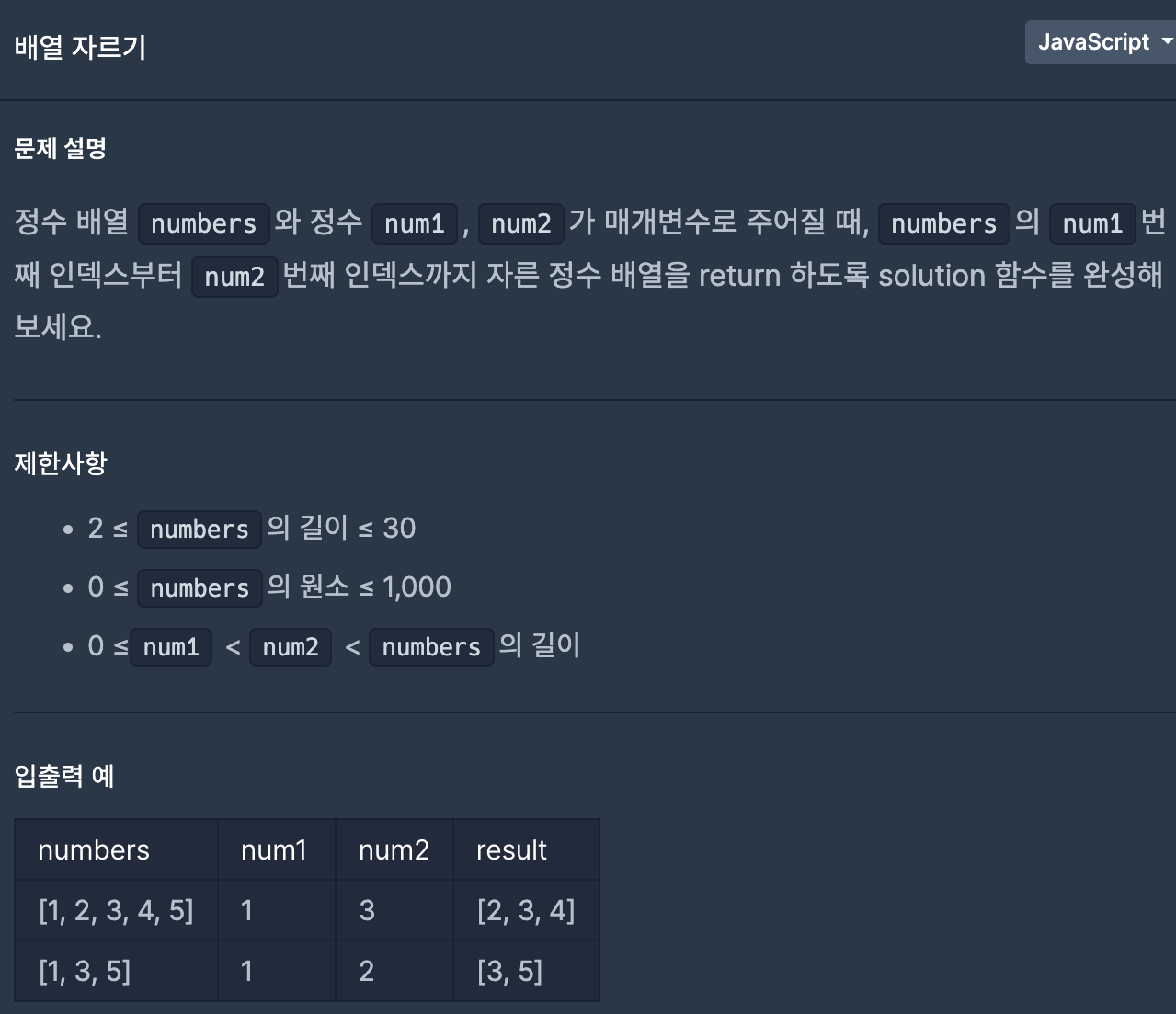 즉, end 인덱스의 요소는 결과에 포함되지 않는다. 따라서, num2번째 인덱스까지 포함하여 자르려면 end 인덱스에 num2 + 1 값을 사용해야 한다!