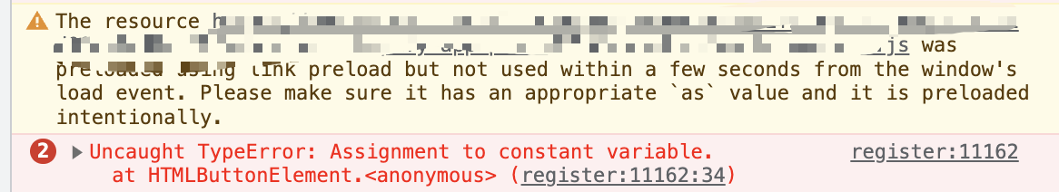오류 메시지에서 "Assignment to constant variable"라는 내용을 볼 수 있습니다. 이 오류는 const로 선언된 변수에 값을 다시 할당하려고 할 때 발생합니다. const로 선언된 변수는 한 번 값이 할당되면 다른 값을 할당할 수 없습니다.